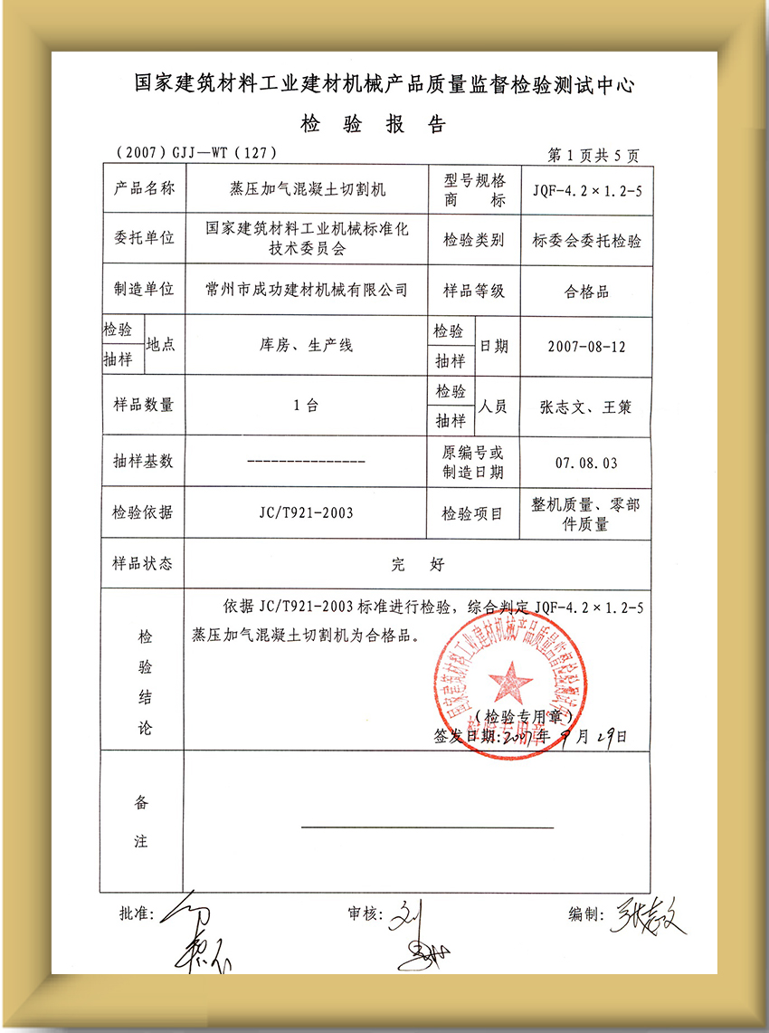 • 已通過(guò)國(guó)家建材機(jī)械檢測(cè)中心檢測(cè)達(dá)到相應(yīng)標(biāo)準(zhǔn)